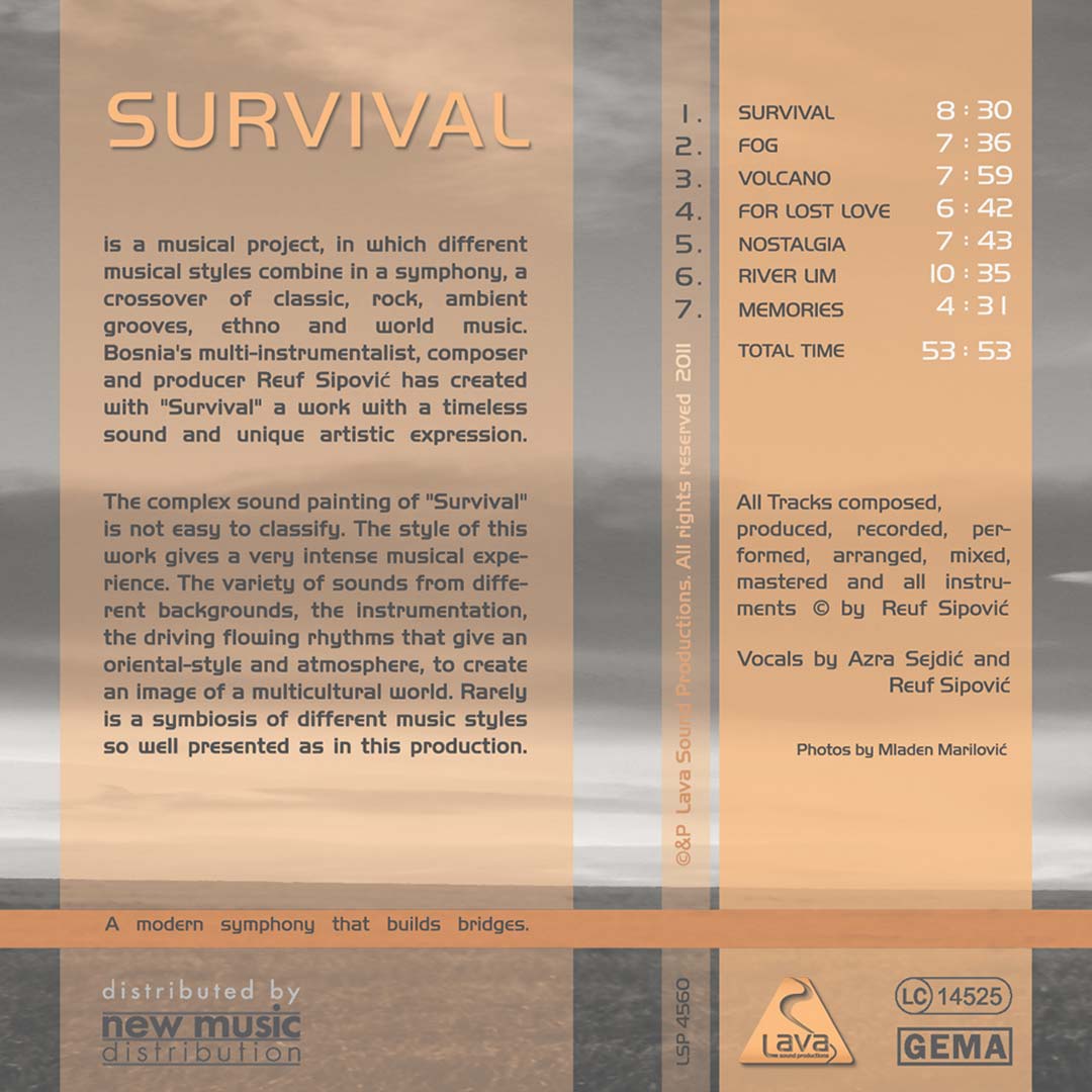 “Survival” is a musical project, in which different musical styles combine in a symphony, a crossover of classic, rock, ambient, ethno and world music. Multiinstrumentalist, composer and producer Reuf Sipović has created with “Survival” a work with a timeless sound and unique artistic expression.